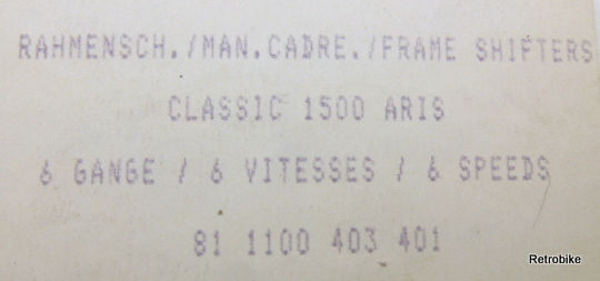 Sachs Huret Aris 1500 Classik Rahmenschalthebel 2x6 Unterrohr Anlötsockel schwarz Rennrad Betriebsanleitung NOS