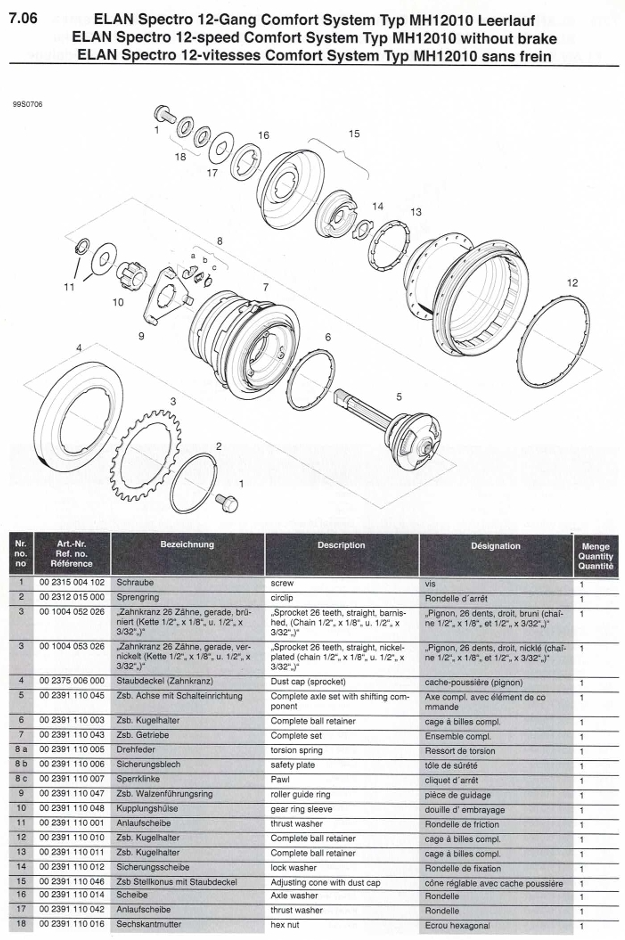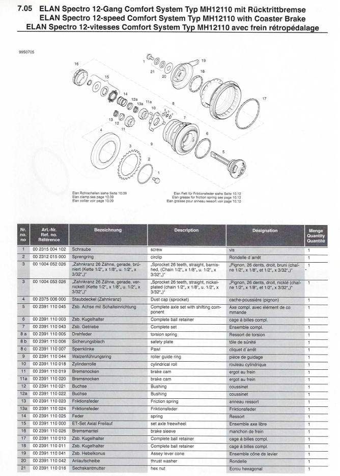 Elan Spectro 12 Gang Typ MH12110 Rücktrittbremse und Elan Spectro 12 Gang Typ MH12010 Leerlauf