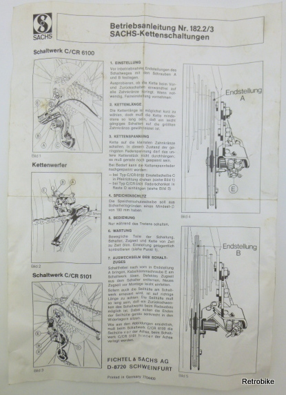 Sachs Sport Super 6100 C/CR Schaltwerk Rennrad Kettenschaltung 4 teilig Info Betriebsanleitung NOS