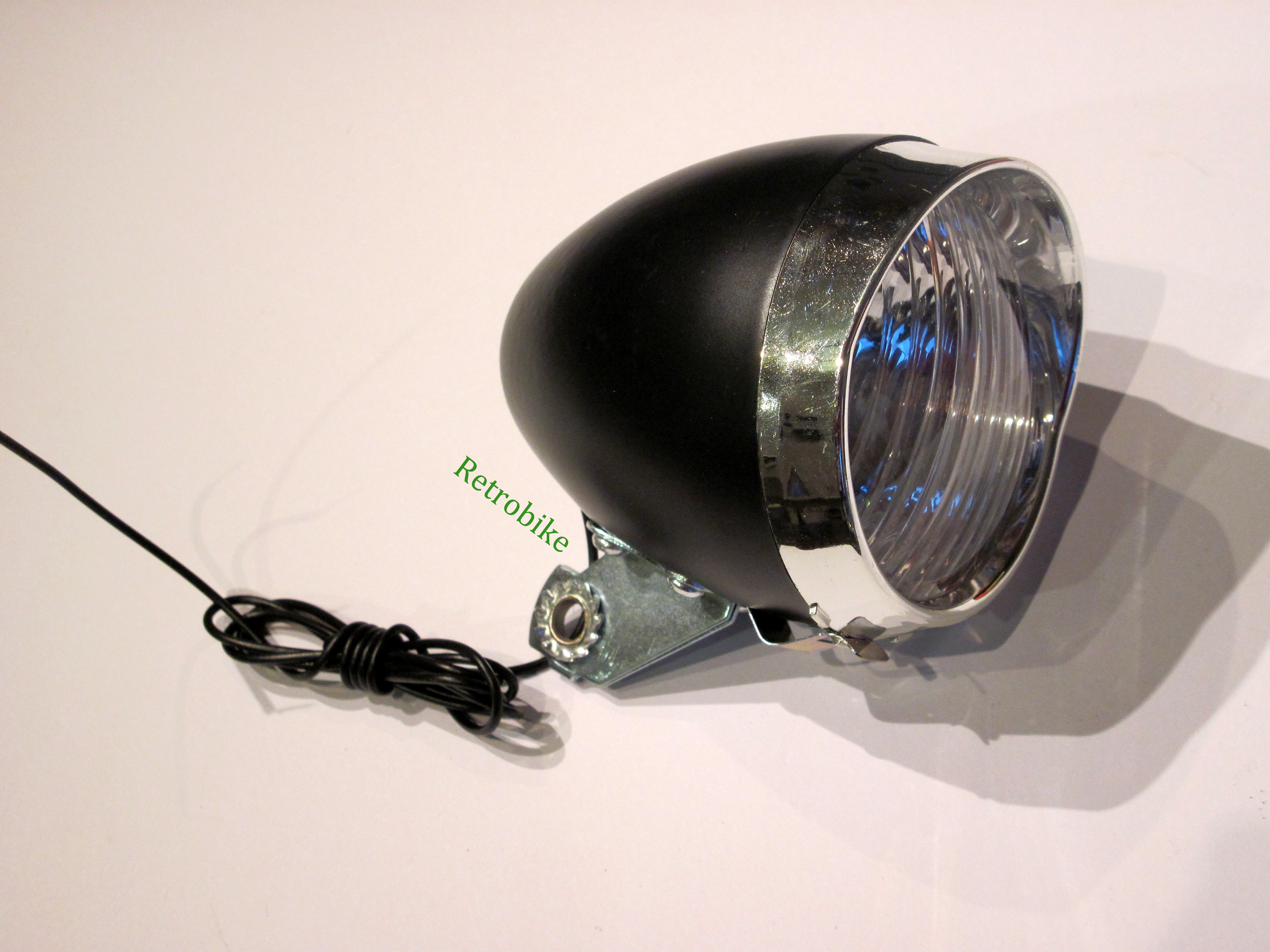 Scheinwerfer Retro 6V 2,4 W 75 mm schwarz mit Lichkabel
