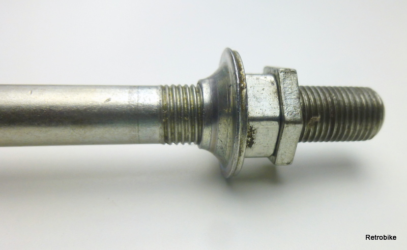 Bicycle front wheel solid axle FG 9.5 threaded rod 3/8" x 26 length 132mm cone lock nut set