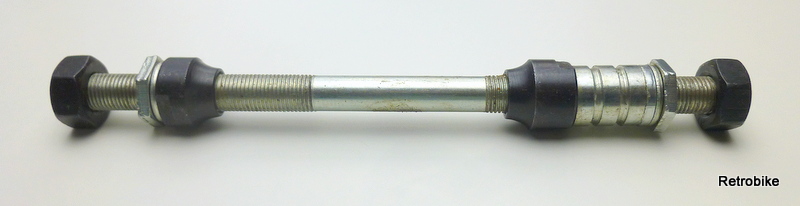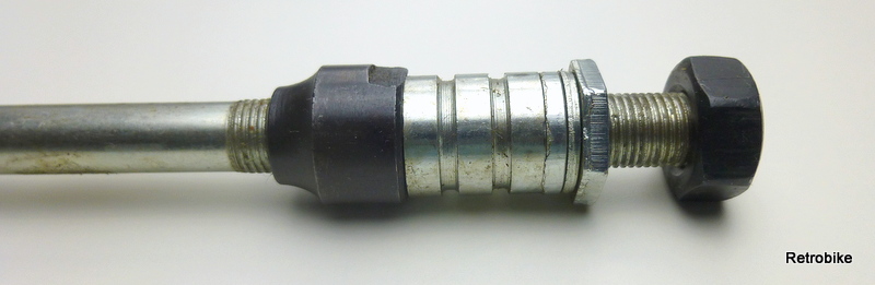 Bicycle rear wheel solid axle FG 9.5 threaded rod 3/8" x 26 length 165mm cone black spacer lock nut axle nut black set
