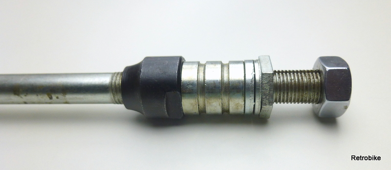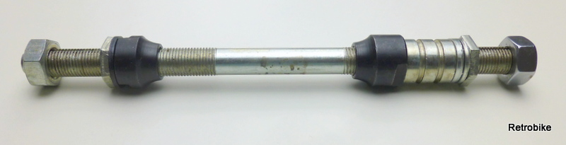 Bicycle rear wheel solid axle FG 9.5 threaded rod 3/8" x 26 length 165mm cone black spacer lock nut axle nut silver set